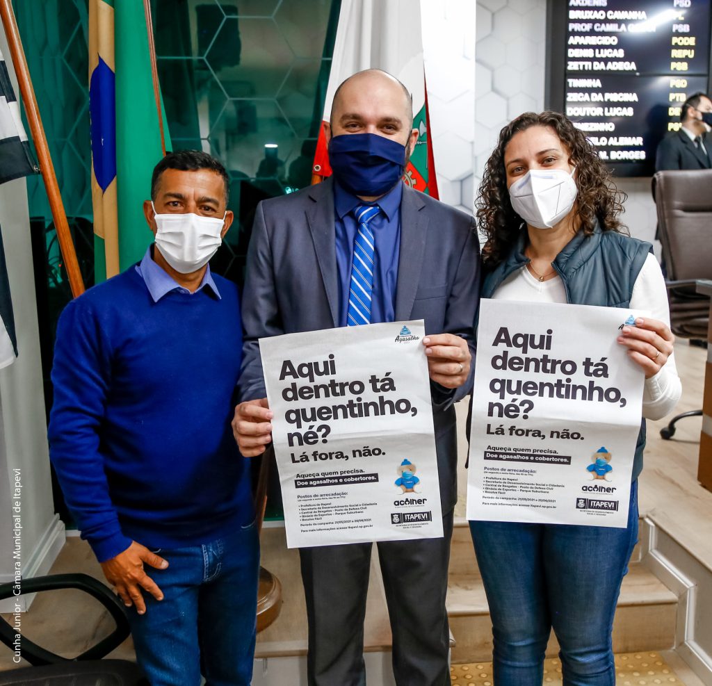 Com a chegada do inverno, os vereadores e servidores da Câmara Municipal de Itapevi (CMI) aderiram a campanha do agasalho 2021, “Aqui dentro tá quentinho, né? Lá fora, não”, da prefeitura. A ação foi lançada na manhã desta terça-feira, 8, durante a sessão legislativa.
