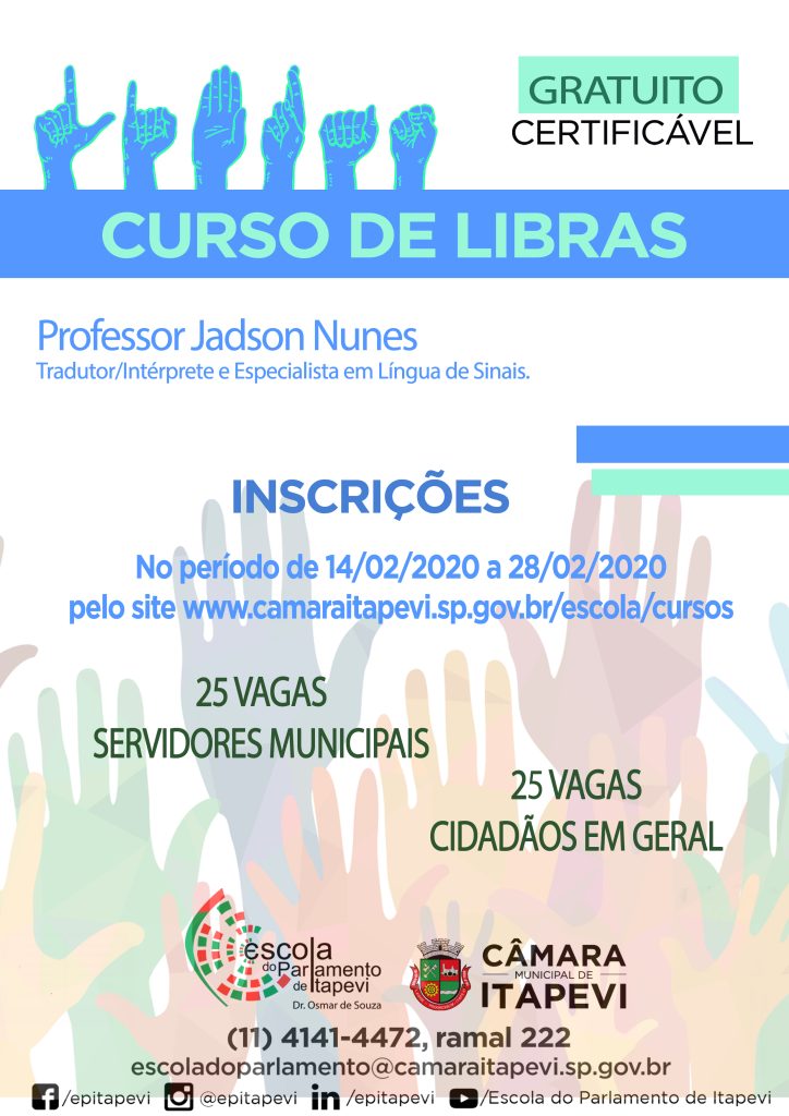 A Escola do Parlamento Dr. Osmar de Souza está com inscrições abertas para o curso gratuito de Língua Brasileira de Sinais (Libras). Foram disponibilizadas 25 vagas, gratuitas, para alunos a partir de 16 anos.