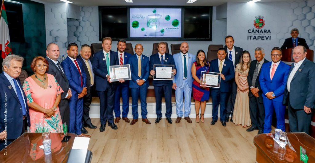 A Câmara Municipal de Itapevi realizou sessão solene na tarde desta terça-feira, 18 de fevereiro, para comemorar o 61º aniversário de emancipação política e administrativa do município. Dirigida pelo presidente Professor Rafael (Pode), o ponto alto da cerimônia foi a entrega do Título de Cidadão Itapeviense ao prefeito Igor Soares (Pode), de autoria dos vereadores Gordo Cardoso (PSDB) e Bruxão Cavanha (PL), e de Título de Cidadão Benemérito ao vice-prefeito Marcos Ferreira Godoy, o Teco (PSD), de autoria do vereador Gordo Cardoso e da vereadora Tininha (PSD).